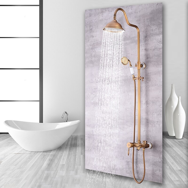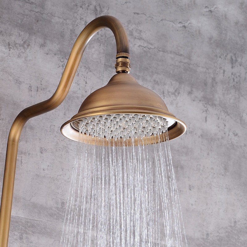 Tyyli:Vintage Tyyli,Maa,Ominaisuudet:ulosveto,Sisältää käsisuihkun,Vesiputous,Hanatyyppi:Suihkujärjestelmä,Asennustyyppi:Kiinnitä ulkopuolelle,Kylmä- ja kuumakytkin:Kyllä,Venttiilityyppi:Keraaminen venttiili,Viimeistely:Antiikkimessinki,